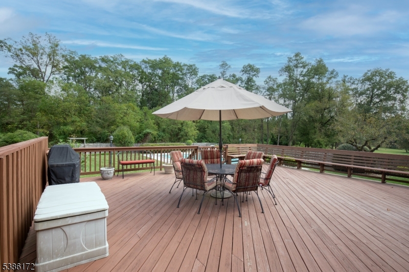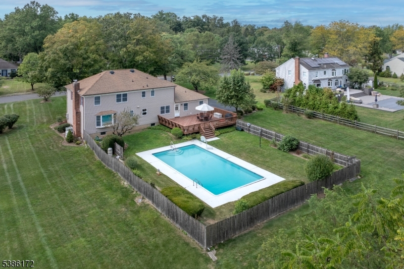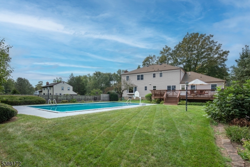 Set on nearly an acre in one of Basking Ridge's most desirable neighborhoods, this true 5-bedroom Colonial offers generous space, timeless style, and a setting of uncommon tranquility. The first floor includes a private office, a sunlit living room, a well-sized dining room, and a large kitchen with breakfast area. A wood-burning fireplace anchors the spacious family room, creating a welcoming place to gather. Upstairs, five bedrooms provide versatility for all lifestyles. Outdoors, a large deck overlooks the pool and a private wooded backdrop to enjoy. The setting is one of its greatest treasures peaceful and tucked away with no train or highway noise, yet only minutes from the town center, shopping, restaurants, transportation and top rated Basking Ridge schools. With its scale, character, and location, this home captures the rare balance of neighborhood living and a retreat-like atmosphere. Highest and Best Offers due on Wednesday. 10/8 at 4 PM GSMLS 3989519