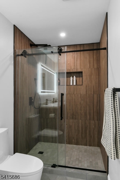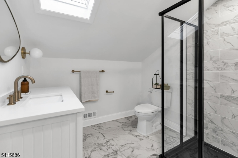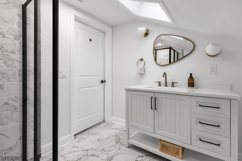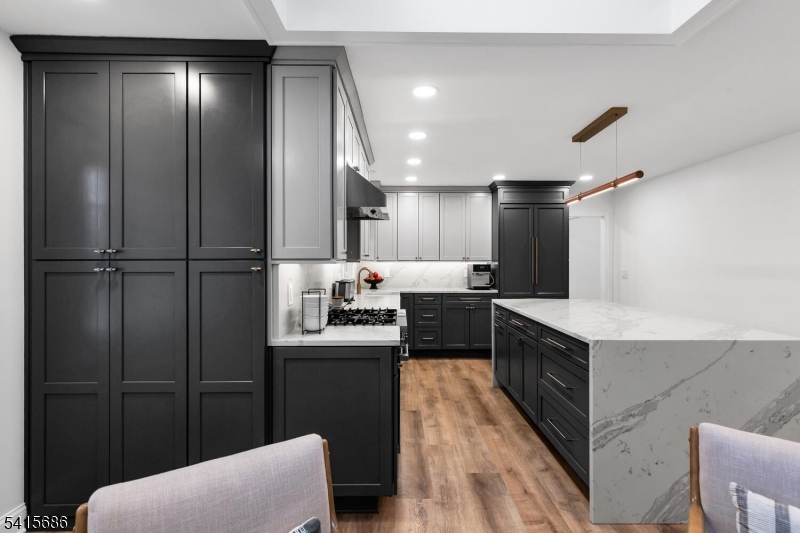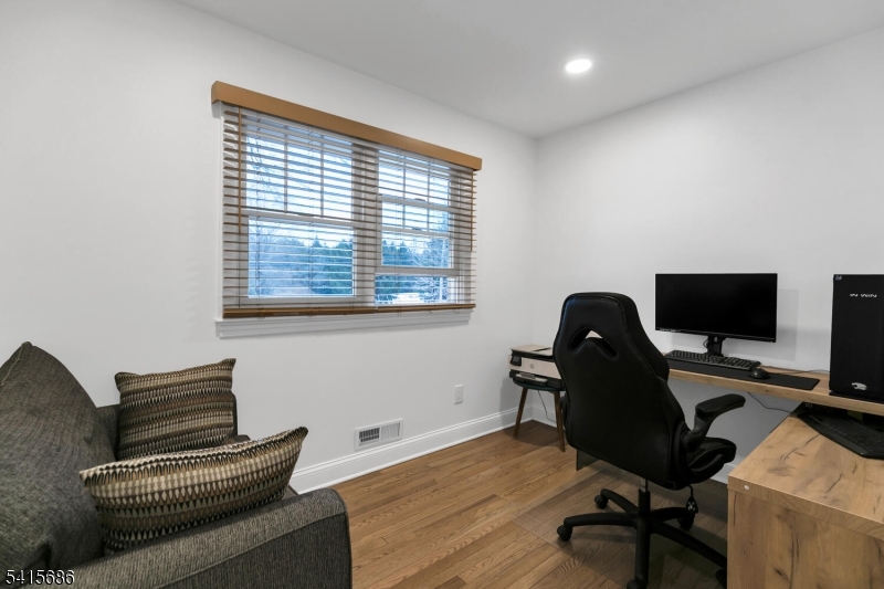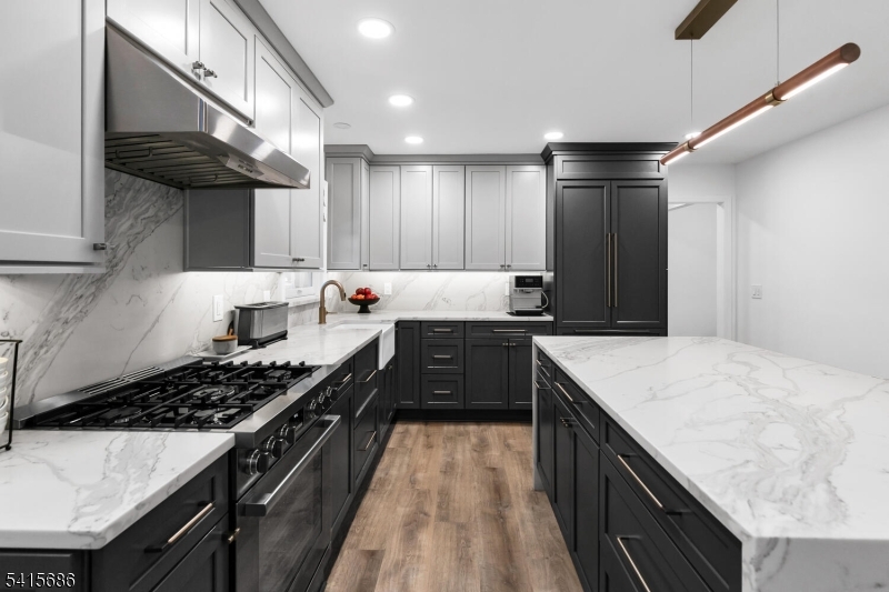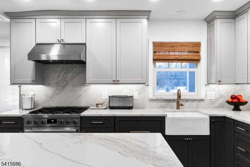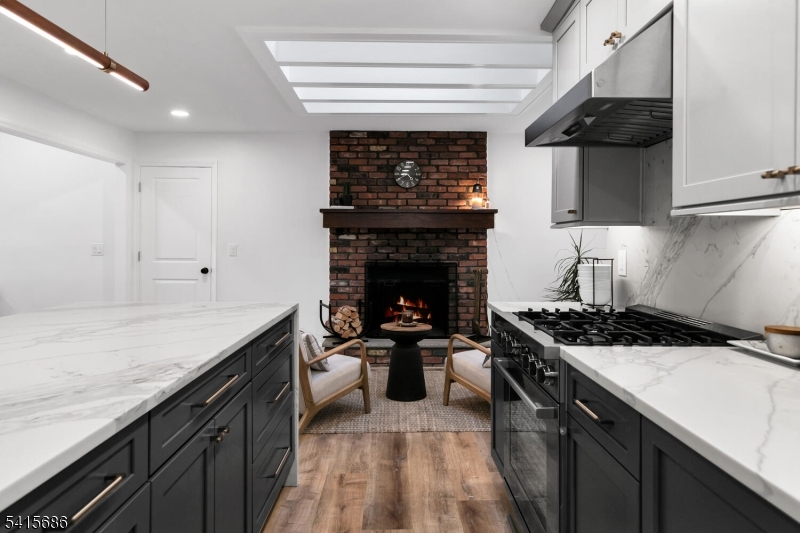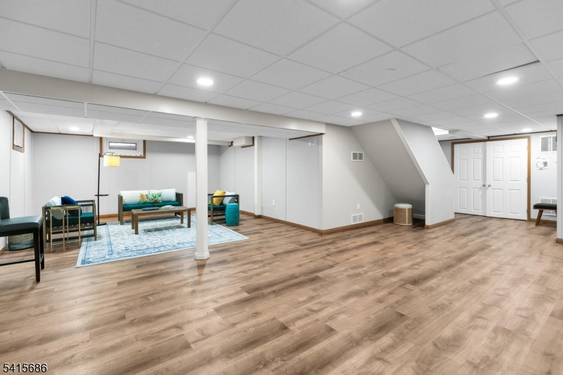 This beautifully renovated expanded 5-bedroom ranch is nestled on nearly an acre in a quiet, desirable neighborhood. This home offers exceptional privacy and entertainment space with a fully fenced backyard featuring a large deck, patio and a sparkling saltwater pool. Inside, the bright, interior offers abundant natural light, refinished hardwood floors, tall ceilings, and a cozy family room with a brick woodburning fireplace. The fully remodeled kitchen is a standout, featuring custom cabinetry, marble countertops, a large waterfall island with seating, high-end built-in appliances including a premium Dacor refrigerator, ideal for everyday meals. Enjoy gatherings in the living room and adjacent dining room which offers direct access to the deck and kitchen. The first-floor primary bedroom is spacious with a luxurious master bath extension and built-in wardrobe. All bathrooms were updated and boast modern finishes with the main bath featuring a freestanding soaking tub. Other improvements (2021-2023) include a new roof, front and patio doors, complete recessed lighting throughout, refinished floors, carpets replaced, new fence, paver walkway, and water filtration system. A partially finished basement includes a rec room, ample storage, and workout area. Move-in ready and meticulously updated, this wonderful home is conveniently close to shopping, parks, restaurants, and transportation in a top NJ school district offering the perfect blend of comfort, style, and location. GSMLS 4013499