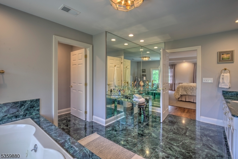 Privately nestled beyond a gated entry on one of Bernardsville Mountain's most coveted streets, this distinguished Bucks County-style Colonial offers timeless architecture and refined, updated interiors. Encompassing over 6,500 square feet plus a finished walk-out lower level, the home is both expansive and inviting.A gracious marble-floored foyer sets the tone for richly detailed living spaces where soaring ceilings, four fireplaces, and custom millwork evoke classic elegance. Recently refreshed with newly finished hardwood floors, designer lighting, and thoughtful updates, the home feels curated and current.Large windows frame views of 10 beautiful acres, drawing in light and connecting interior spaces to the pool, spa, and manicured grounds. The layout includes a vaulted family room, paneled library, butler's pantry, and spacious kitchen anchored by a 15-ft island ideal for everyday gatherings. The luxurious primary suite offers dual marble baths and a serene sitting room.With five bedrooms, multiple entertaining areas, and resort-like outdoor amenities, this is a rare opportunity to own a legacy home in one of New Jersey's most prestigious enclaves. GSMLS 4003638