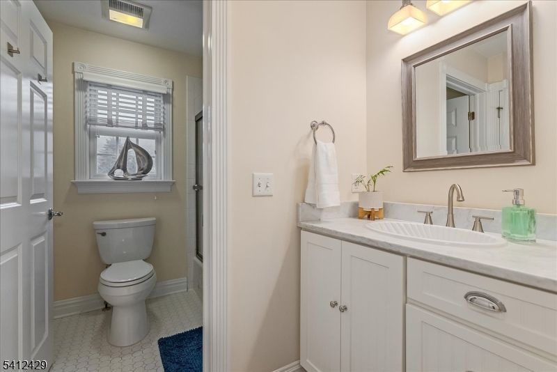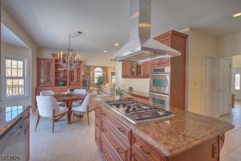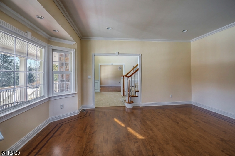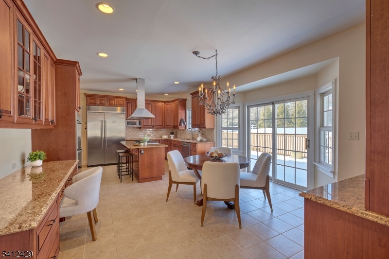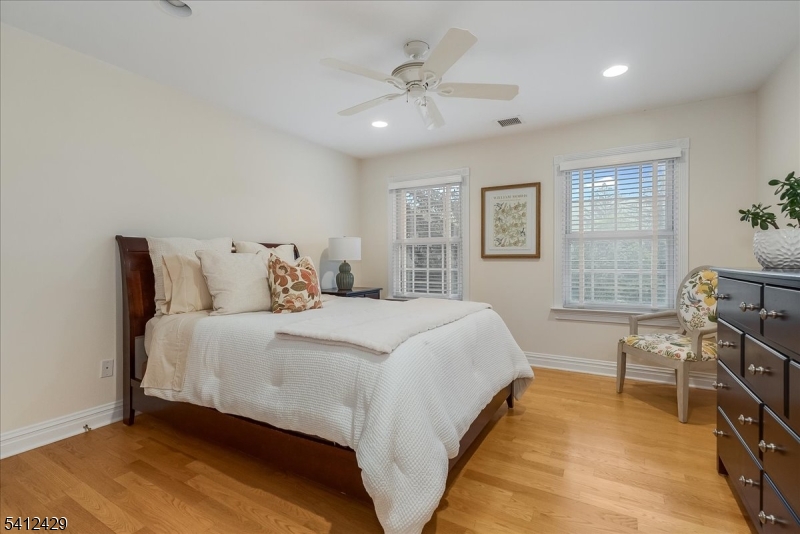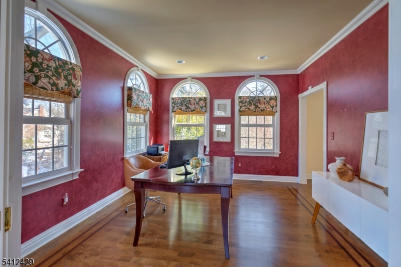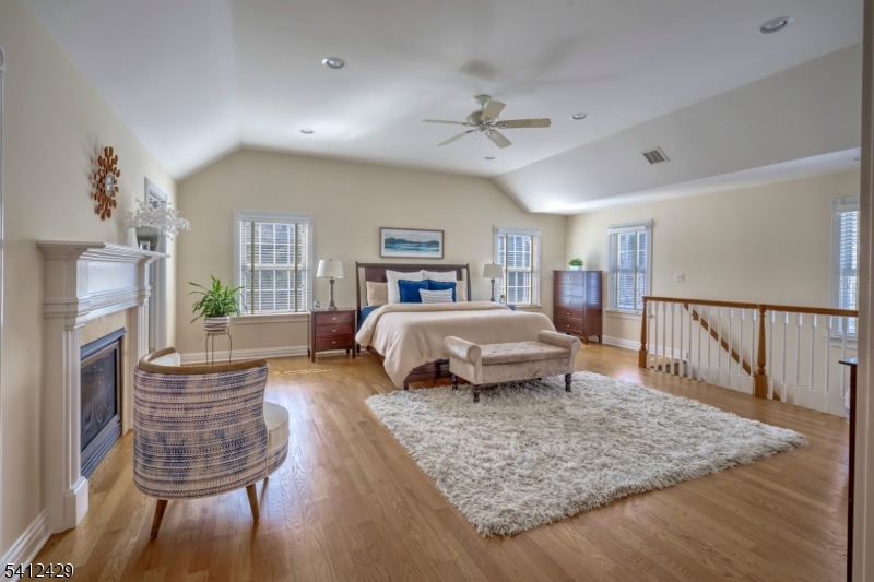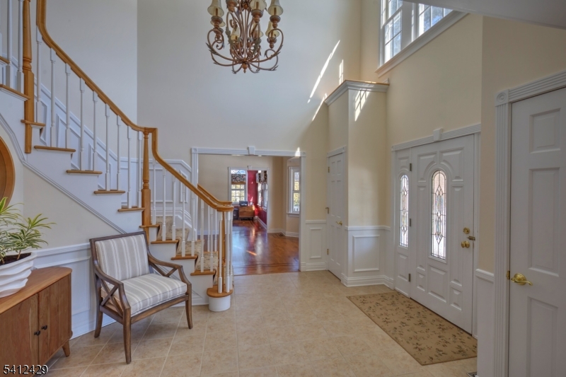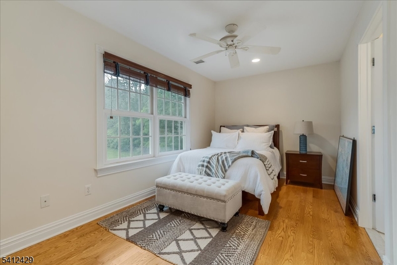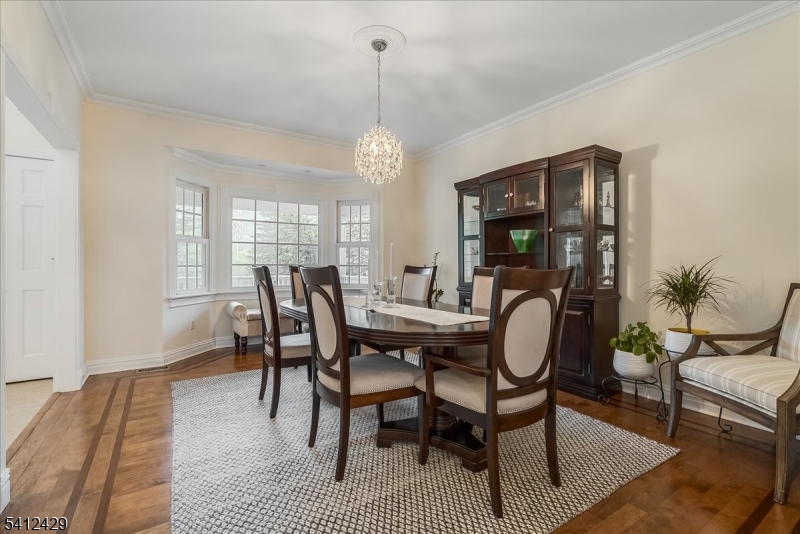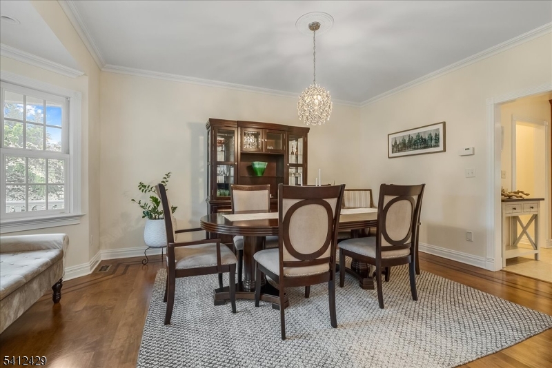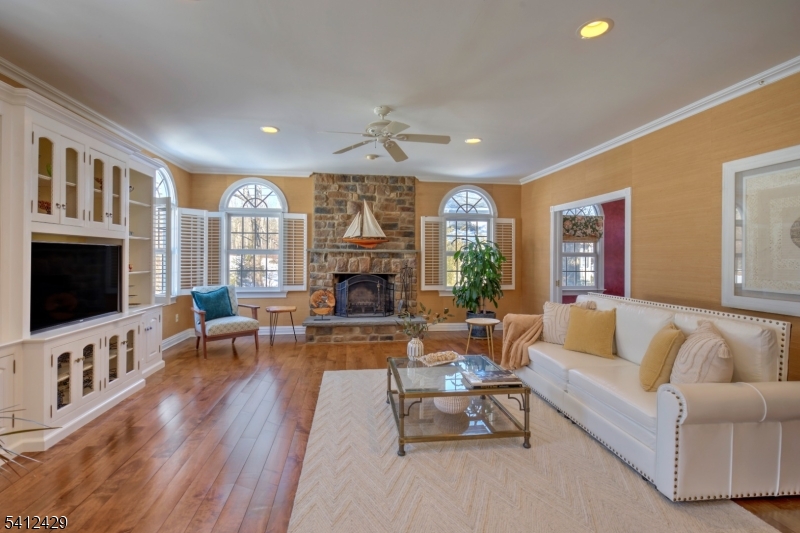 Stately 5 bedroom, 3.5 bath custom Colonial with lovely front porch in Bernardsville. A thoughtfully designed living space includes a two-story foyer with custom wainscoting & sweeping staircase. Custom molding accents in every room & beautiful walnut Brazilian teak floors in main rooms; living room, office, dining room and family room. Wood burning fireplace with handsome stone surround, custom built-in cabinetry & plantation shutters in the family room. The heart of the home kitchen includes newer stainless steel appliances, granite countertops, double wall oven and abundant custom cabinetry. A built-in desk, walk-in pantry and dry bar add style and function, while sliding glass doors from the breakfast area lead to the expansive deck overlooking the rear yard. A convenient back staircase leads from the master suite to the laundry room. The primary suite includes a sitting room, 2 large walk-in closets with custom built-ins and a gas fireplace. A sumptuous bathroom with double vanities, a jetted tub and separate shower stall complete this oversized suite. Two bedrooms share the hall bathroom and the two remaining bedrooms are connected by a shared bathroom. All the bedrooms as well as the primary suite and upper hallway are also hardwood with custom moldings. A walk-up attic w/high ceilings & windows offers potential for future expansion or expansive storage. The newly refinished basement adds extra living space to the home. Generator. 3 car garage with additional storage GSMLS 4012077