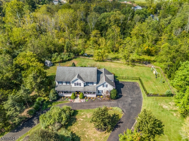 Nestled in a picturesque neighborhood of similarly styled homes, this spacious Colonial sited on 3 private acres offers timeless elegance & modern comfort across 14 beautifully appointed rooms. Bathed in abundant natural light, & with 4 generous bedrooms & 3.5 baths, this home is designed for both relaxed living & effortless entertaining. Overall layout features rooms flowing seamlessly from one to the next & providing for several flexible spaces to be used however they suite you. Step onto the welcoming oversized front porch & into a warm, inviting interior featuring a renovated kitchen w/ premium finishes, new appliances, tile backsplash, quartz counters, expansive center island & desirable walk in pantry. Kitchen is open to family room w/its traditional fireplace, & to the scenic private backyard w/composite deck & paver patio perfect for outdoor gatherings or quiet evenings under the stars. The fin bsmt w egress & full bath adds versatile space for home theater, gym, or office. Large bedrooms & baths on 2nd level provide space & privacy for all. For added comfort & piece of mind, both furnaces & AC units have recently been replaced. Enjoy easy access to commuting routes & the charming downtowns of Somerville & Flemington where shopping & dining options are plentiful. Nearby Raritan River Greenway trails for weekend strolls or bike rides along the river. This is more than a house it's a lifestyle. Come experience the perfect blend of classic style & modern convenience. GSMLS 3991095