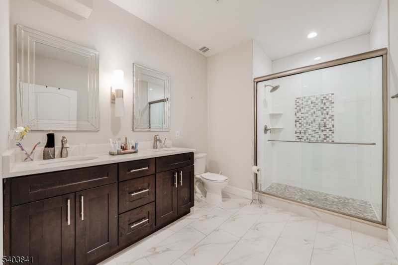 MOVE-IN READY 2 BED/2 BATH BRANCHBURG CONDO CLOSE TO EVERYTHING! Just off 202 & under 5 miles from Bridgewater Commons Mall, heart of historic Somerville w/ NYC train & minutes from all the shops & services you'd ever need, this pristine first floor condo is in a quiet, modern building w/ underground garage parking. Enjoy security code access to large lobby & before stepping into a bright open floor plan w/ beautiful hardwood floors, crisp white wainscoting w/ pillars & soaring ceilings. The heart of this unit is the modern Kitchen, Dining & Living areas that blend seamlessly to provide the perfect ambiance for leisure & comfort. Updated Kitchen shines with white cabinetry, quartz countertops, large island with nicely contrasted black base & SS appliances including gas range w/ griddle, dishwasher, microwave & French door/bottom freezer fridge. Dining area w/ chandelier leads into Living Room with plenty of room for seating & access to private balcony through sliding French doors. Working from home is a breeze with dedicated office/den off of the Kitchen. Relish the in-unit Laundry Room w/ extra storage closet. Hallway Full Bath has tub/shower combo & quartz vanity & leads into large Bedroom with double windows. Opposite side offers gorgeous private Primary Suite w/ huge storage closet & Full Bath w/ double quartz vanity & tiled walk-in shower, Walk-in Closet & serene Bedroom. Additional hallway storage unit available on the same level. Plus only a mile to Duke Island Park! GSMLS 4003913