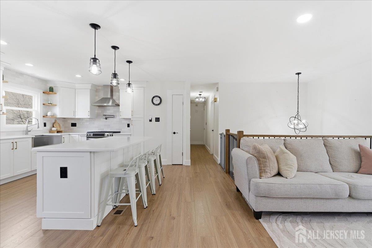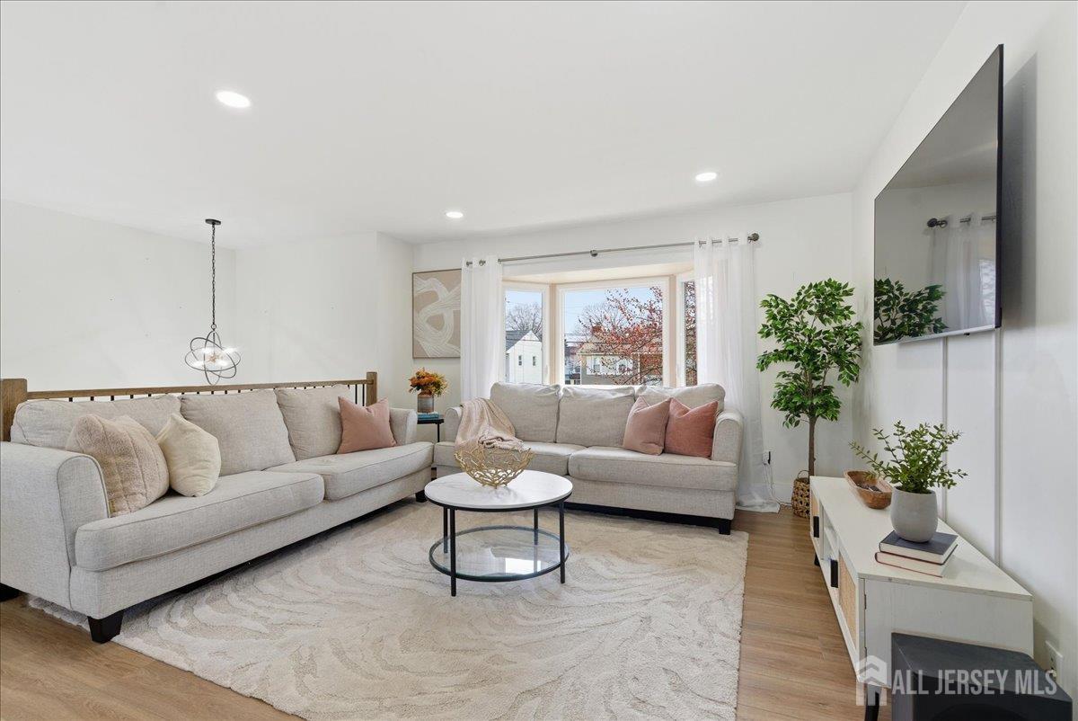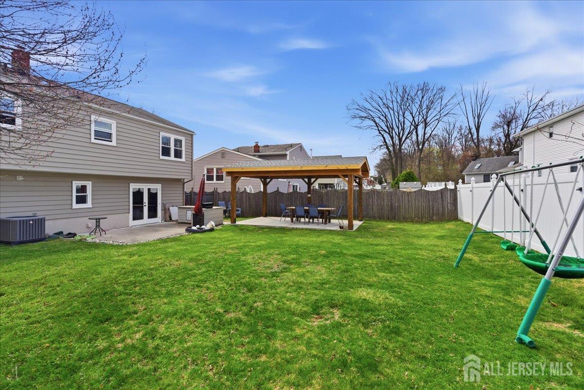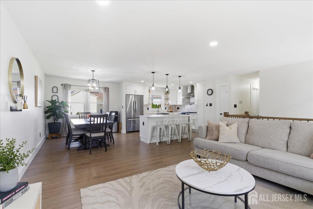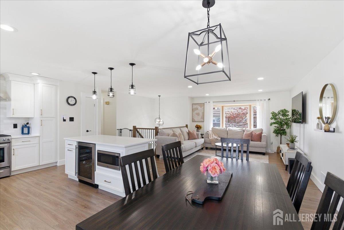 Modern and beautifully updated, this 4 bedroom, 2 1/2 bath home delivers a refined sense of luxury across a spacious, well-designed layout. The main floor features a sleek, fully renovated kitchen with a center island, pantry, and built-in spice rack cabinetry, along with a pot filler, wine fridge, and vented hood seamlessly flowing into the dining and living areas. Three bedrooms and two full baths complete this level, all enhanced by new flooring, central ac, and sun-drenched interiors. The lower level expands the living experience with a large family room that opens directly to an oversized, lush green backyard complete with a custom pergola and built-in grill, creating a beautiful setting for elevated outdoor entertaining. This level also features an additional bedroom, half bath, spacious laundry room, and a generously sized closet, adding both convenience and thoughtful design. A seamless blend of modern upgrades, natural light, and elevated living. Conveniently located near middle and high schools. CJMLS 2613515R