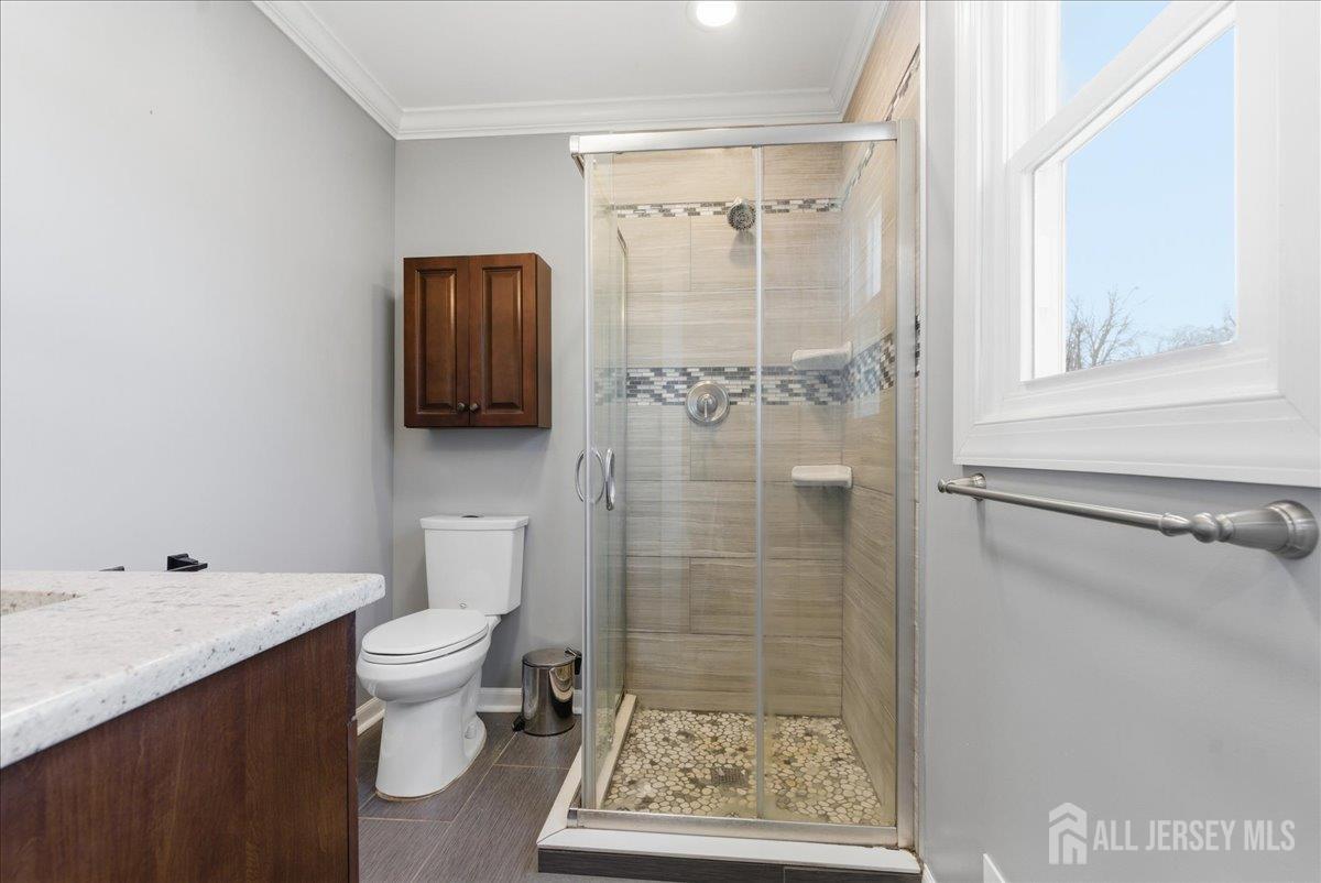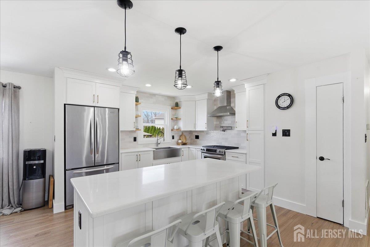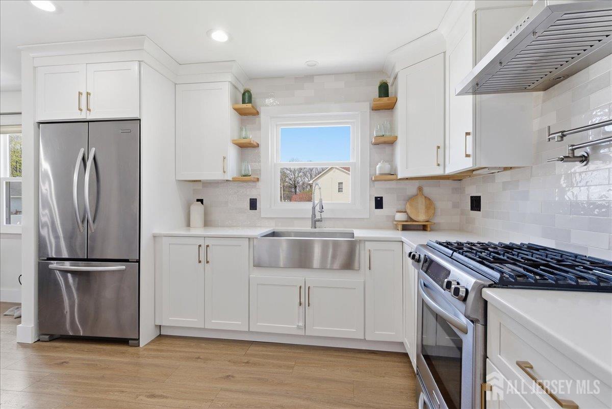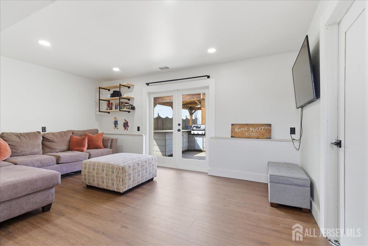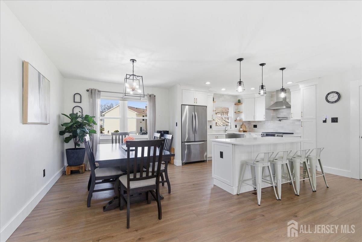 Modern and beautifully updated, this 4 bedroom, 2 1/2 bath home delivers a refined sense of luxury across a spacious, well-designed layout. The main floor features a sleek, fully renovated kitchen with a center island, pantry, and built-in spice rack cabinetry, along with a pot filler, wine fridge, and vented hood seamlessly flowing into the dining and living areas. Three bedrooms and two full baths complete this level, all enhanced by new flooring, central ac, and sun-drenched interiors. The lower level expands the living experience with a large family room that opens directly to an oversized, lush green backyard complete with a custom pergola and built-in grill, creating a beautiful setting for elevated outdoor entertaining. This level also features an additional bedroom, half bath, spacious laundry room, and a generously sized closet, adding both convenience and thoughtful design. A seamless blend of modern upgrades, natural light, and elevated living. Conveniently located near middle and high schools. CJMLS 2613515R