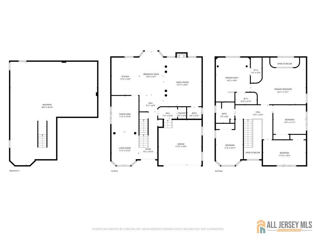 East-facing colonial home featuring a classic brick front, paver driveway, and inviting walkway leading to a bright, open foyer with a stunning chandelier and abundant natural light. The main level offers ten-foot ceilings and a spacious living and dining room combination with hardwood flooring. Elegant columns define each space with timeless appeal and a built-in surround sound system enhances the area. The gourmet kitchen features stainless steel appliances, a large center island with seating, and a mini bar/butler pantry tucked into the hallway. Custom windows on the first floor enhance natural light throughout. Sliding doors open to a fully fenced backyard with a paver patio and lawn, perfect for outdoor enjoyment. The family room offers hardwood floors, classic columns, a step-down design that adds architectural character, and a conveniently located powder room. The first-floor hallway connects with the laundry and pantry area and provides direct access to a two-car garage as well as basement entry. The second level overlooks the foyer and offers a spacious primary bedroom with 8+ foot ceilings and a luxurious en-suite bath with a stall shower, jacuzzi tub, and two closets. Three additional bedrooms feature large windows and ample closet space. A full hall bath includes a tub and a double vanity. The unfinished basement has nine-foot ceilings, offering excellent potential for future customization. The entire house has central vacuum. Ideally located near the Garden State Parkway, NJ Turnpike, Routes 287 & 1, shopping, dining, and Metropark Train Station. CJMLS 2661043M