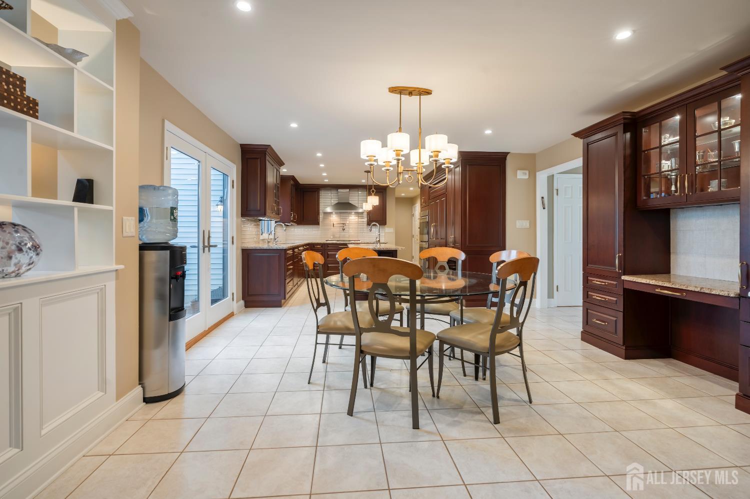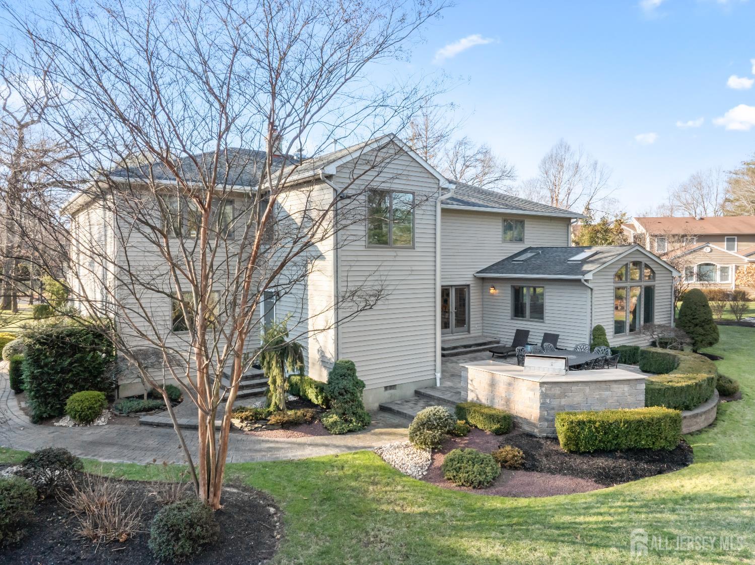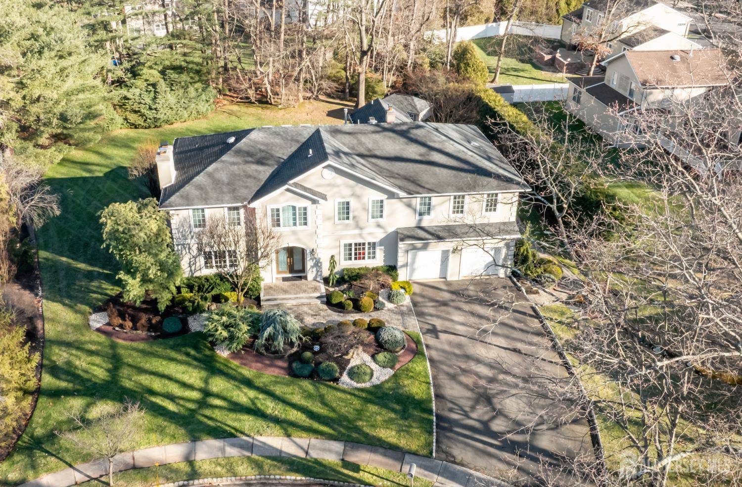 Set on a picturesque cul-de-sac in the highly regarded Colonial Oaks section of East Brunswick, this exceptional custom Colonial offers refined living in a peaceful residential setting with close proximity to everyday conveniences. A welcoming foyer sets the tone for the home, showcasing custom glass railings and a striking main staircase. Thoughtful architectural planning includes a secondary private stairway and a discreet side entrance that connects directly to the mudroom, pantry, and kitchen, enhancing both functionality and privacy. The main level unfolds beautifully. A spacious living room with an exposed brick accent wall and wood-burning fireplace creates a warm yet sophisticated ambiance. Elegant French doors lead into the expansive great room, where custom built-in bookcases, skylights, and an abundance of windows bathe the space in natural light. The heart of the home is the gourmet eat-in kitchen, impeccably appointed with custom cabinetry, a panel-ready Sub-Zero refrigerator, glass tile backsplash, an oversized center island, Wolf gas cooktop with professional vent hood, double wall ovens, double sink, two dishwashers, two garbage disposals, and premium stainless steel appliances. Sliding doors provide seamless access to the outdoor living areas, ideal for entertaining. A formal dining room with crown molding is thoughtfully positioned and connects to the kitchen through a charming butler's pantry/serving station with an additional sinkperfect for hosting. The main level also features a bedroom and full bath, a spacious mudroom, interior access to the two-car garage, and a convenient half bath that completes this level. Upstairs, the home is intelligently divided into two private wings. The primary suite offers a fireplace, inviting sitting area, walk-in closet, and a beautifully renovated spa-inspired bath with soaking tub and glass-enclosed shower, along with convenient access to the second-floor laundry room. This wing also includes two additional bedrooms and a full hall bath. The opposite wing offers two en-suite bedrooms, each with a private bath, a shared lounge area, and access to the secondary staircaseideal for guests or extended living arrangements. The finished basement expands the living space with a private office, storage closet with built-in shelving, a full bath, and generous open areas suitable for recreation, fitness, or additional workspace.Outdoors, the property is professionally landscaped throughout, offering a serene setting enhanced by a stone patio and a custom-built stone outdoor kitchen with grill, ideal for al fresco dining and entertaining. The property is further enhanced by an underground sprinkler system, supporting the beautifully maintained grounds. Conveniently located with easy access to Route 18, Route 1, the NJ Turnpike, Downtown New Brunswick, Rutgers University, and major hospitals. Close to NYC bus service, shopping, dining, recreation, and houses of worship. CJMLS 2608570R