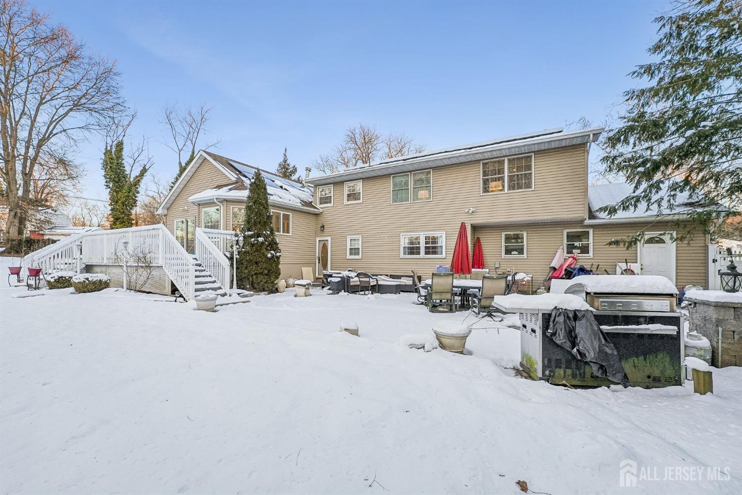 Welcome to 42 Colburn Road, a well-maintained 4-bedroom, 3.1-bath home situated on a .48-acre corner lot in East Brunswick. This spacious residence offers a flexible multi-level layout with generous living areas, ideal for everyday living and entertaining. The home features a formal living room with a vaulted ceiling, an open-concept living and dining area, and an eat-in kitchen equipped with stainless steel appliances, a double oven, center island, peninsula seating, and ample pantry storage. A first-floor bedroom and full bath provides excellent flexibility and supports multi-level living needs. Upstairs, the primary ensuite bedroom offers a private retreat with a spa-style bath featuring a stand-up shower, double-sink vanity, two closets, and a dedicated laundry area. Two additional bedrooms and a full bath complete the upper level. The finished basement offers a recreation room with a bar, ideal for hosting, along with additional storage and a second laundry area. Outdoors, enjoy a fenced yard with a shed, plus a patio and deck overlooking the spacious backyardperfect for relaxing or entertaining. Conveniently located near parks, downtown New Brunswick shopping and dining, a train station with direct access to NYC, and major commuter routes including Route 1 and the NJ Turnpike. Experience the comfort and versatility of 42 Colburn in a prime East Brunswick location. CJMLS 2609907R