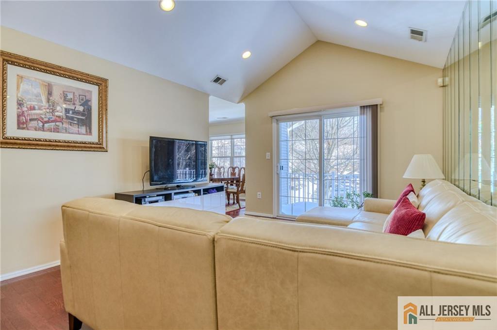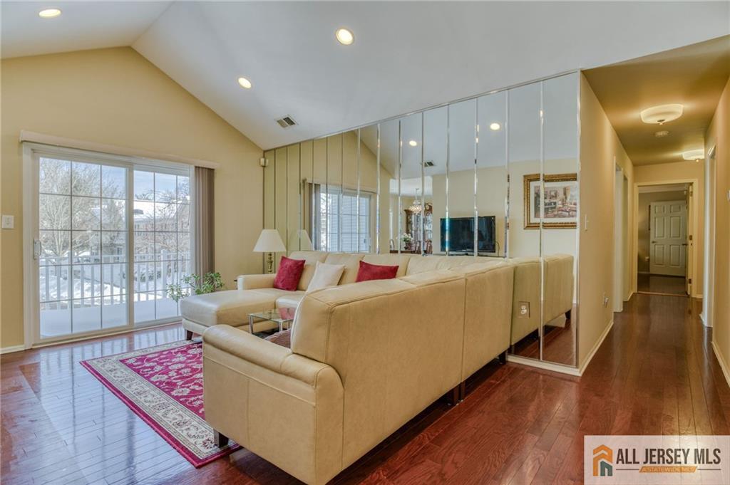 End of Rainbow! 1488 sf Bright and Airy 3 Bedrooms End-Unit on 2nd Floor. Hardwood floor, Vaulted ceiling in Living Room, Sliding door to Balcony, Upgraded Kitchen and appliances, Spacious Master Bedroom with Master Bath and Walk-in closet. Lots of amenities including Outdoor Swimming Pool and Clubhouse, Tennis Courts and Playground. Come and enjoy this beautiful community. Close to Fairground and all Parks! Fabulous Buy! Desirable East Brunswick Blue Ribbon Schools! You must take a look! CJMLS 2661295M