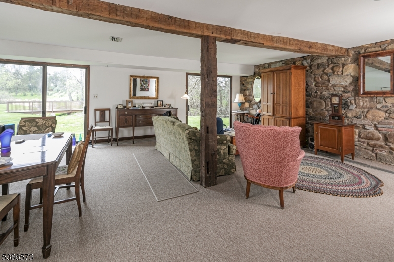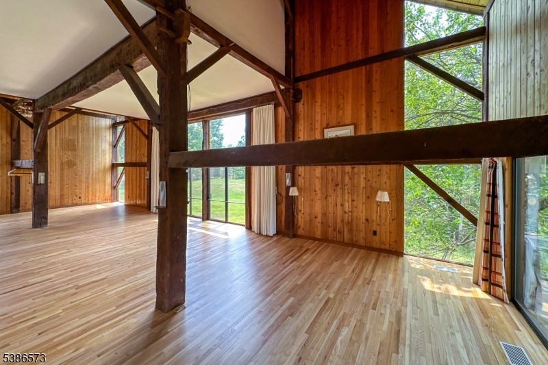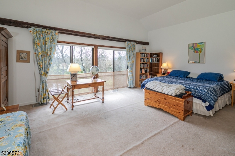 With the D&R Canal edging one side and preserved natural land bordering the 3 other sides, this peaceful, offering has that worlds-away country feel within 47 miles of NYC and 8 miles of Princeton. The masterfully converted bank barn has views of a working Christmas tree farm, on a lot of its own and adjacent to a pond and stream. Presenting the chance to live in one-of-a-kind comfort, the dramatic stone and clapboard barn is full of rustic contemporary allure thanks to the talents of renowned local architect, Jerry Ford. Huge beams accentuate soaring ceilings and oversized windows welcome in light and protected views of the grounds. Some space is wide open, ideal for gathering groups. A library, featuring floor-to-ceiling bookshelves, and a study with a reading nook, are cozy spots to escape. The upper bedroom suites are beyond spacious, while the ground floor offers guests the independence of a self-contained apartment. With three fireplaces, multiple decks and no neighbors in sight, this place is just as magical on a snowy day as it is on a starry night! If you're seeking a dramatic rural getaway where all can convene comfortably, this property represents an extraordinary opportunity. Come see! GSMLS 3988383