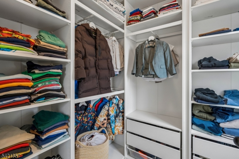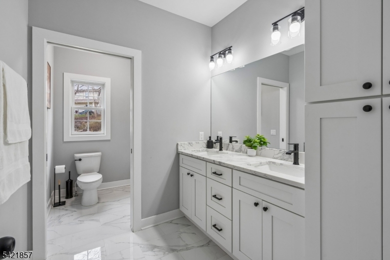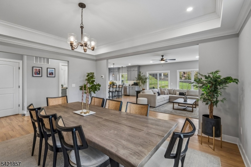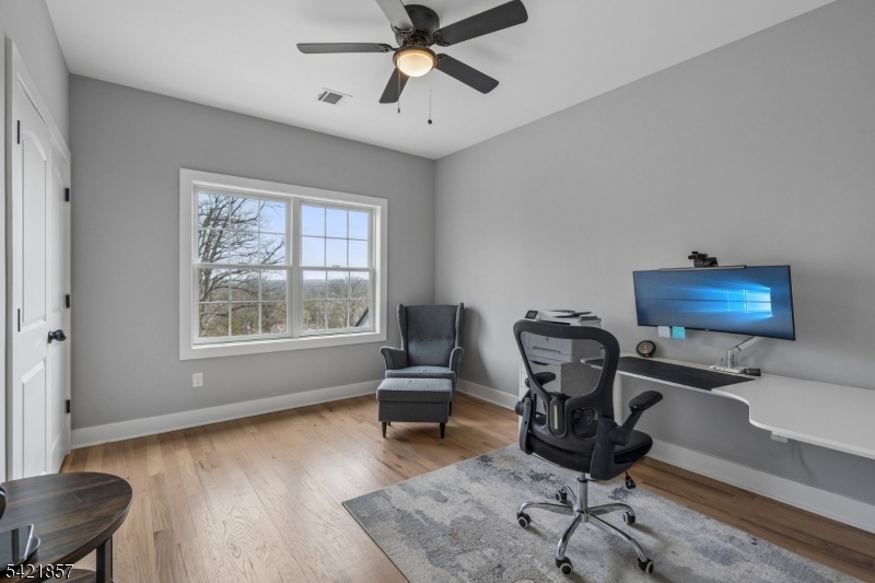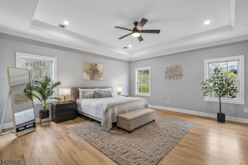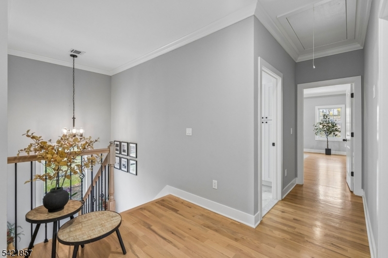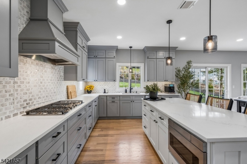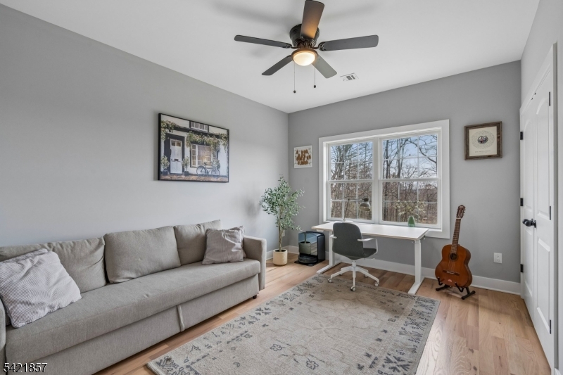 A 2025 build, taken beyond builder-grade by the current owners. Six bedrooms, four and a half baths, 4,800 finished square feet on a private double lot running up to Washington Rock State Park, with direct trail access. Perched on a quiet elevation with sweeping views, the home opens into a bright family room with white oak floors and nine-foot ceilings. A chef's kitchen with quartz-topped island and walk-in pantry flows off it, alongside a dining room with crown molding and a living room with gas fireplace. A first-floor bedroom with its own full bath, private enough for guests and quiet enough for a home office. Upstairs, the primary suite with soaking tub and walk-in shower is joined by three additional bedrooms, a full bath, and second-floor laundry. The finished lower level adds a sixth bedroom with its own full bath, plus open flex space. What sets this home apart: the post-build work. Stone veneer wraps the exterior. The back stairs were rebuilt in stone with new railing to match the front elevation. A paved patio with a French drain anchors the yard, and a paved path circles the house to a dedicated trampoline area. New sod and trees complete the landscaping. Hardwood floors sanded and refinished. Two walk-in closets added. Garage floor coated. New appliances throughout. EV-prewired two-car garage, 200-amp service, Watchung Hills Regional HS. Eight minutes to Dunellen station. Move-in ready, every major upgrade done, inside and out. GSMLS 4018498