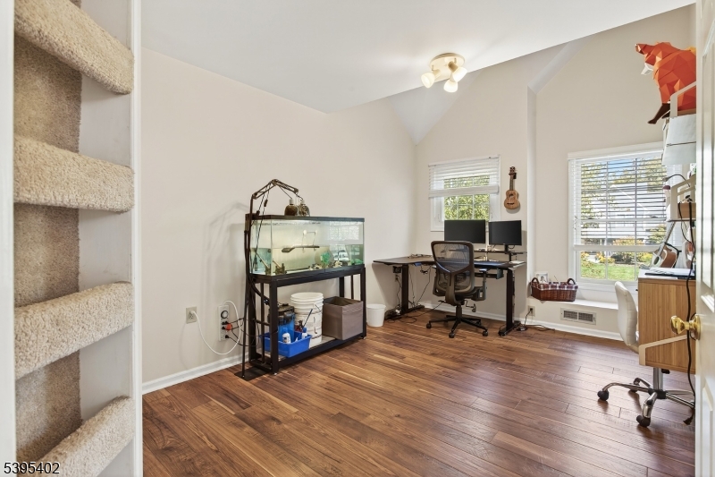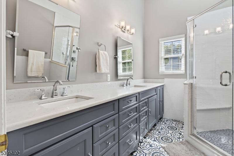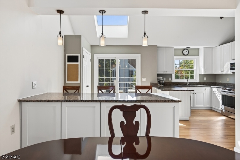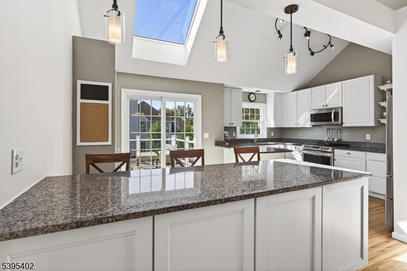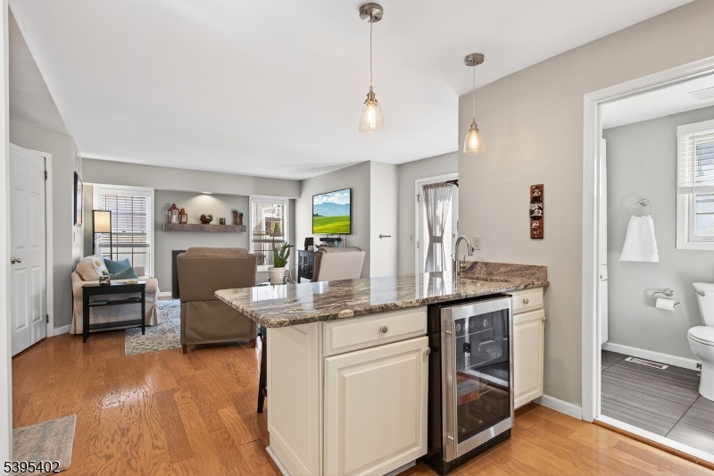 This charming multi-level home sits on a spacious corner lot in desirable Hopewell Borough, just steps from award-winning Hopewell Elementary, shops, and restaurants. A bright living room with a corner wood-burning fireplace welcomes you inside. Up a few steps, the dining room opens to an updated eat-in kitchen with generous counter space, abundant storage, newer appliances, and a new skylight. The upper level features two spacious bedrooms, including a renovated primary suite with a custom walk-in closet and modern en-suite bath. A remodeled hall bath with soaking tub completes this level. A unique two-room loft connects to both bedrooms ideal for a home office, play space, or reading nook. The lower level includes a large family room with a second fireplace, wet bar, wine fridge, guest/in-law suite with renovated full bath, laundry, direct backyard access, and entry to the 2-car garage. A finished basement adds space for a gym, office, or rec room. Outdoor spaces include a composite deck with Sourland Mountain views and a paver patio with lighting and a curved sitting wall, perfect for grilling and fire-pit evenings. A large shed provides extra storage.Recent updates include a new roof and skylights (2024), remodeled baths (2019), refinished floors, new carpet, composite deck (2021), newer appliances, and smart thermostat. With over 2,800 finished sq ft, this home blends comfort, character, and convenience in the heart of Hopewell Borough. GSMLS 3996162