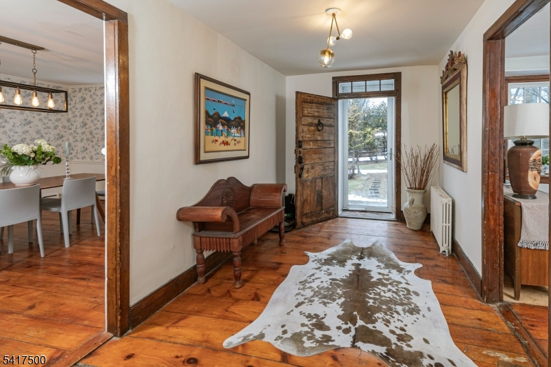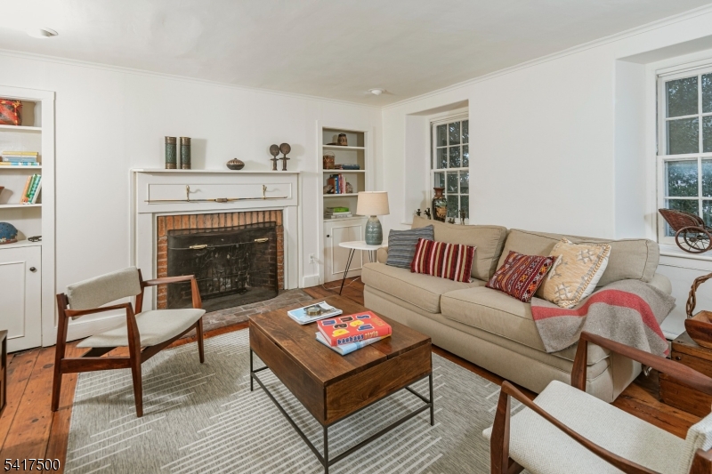 Driving along a winding country road in Hopewell Township, where farms, fields, and woodlandsshape the landscape, a gazebo and romantic pond glint through the trees before revealing this stately 1840s historic home with a charming guest cottage. Inside, random-width wood floors,original doors and hardware, deep window sills, and fireplaces reflect timeless 19th-century craftsmanship. The gracious layout includes a wide foyer, kitchen with fireplace, dining room,study with built-ins, and living room. Upstairs are four bedrooms, including one with a private bath, plus a walk-up attic and walk-out basement with laundry, gym, and half bath. The separate guest cottage offers space for visitors or a studio. Located in the sought-after Hopewell ValleySchool District and convenient to both NYC and Philadelphia.Working fireplace is in the cottage living room. It is being sold AS IS GSMLS 4015419