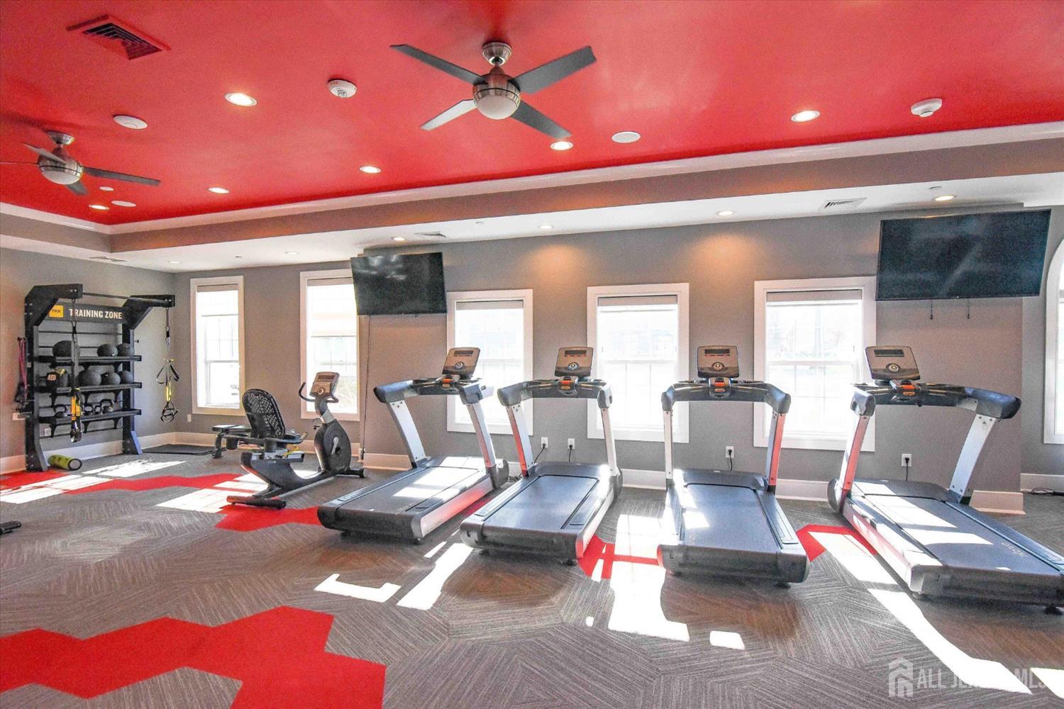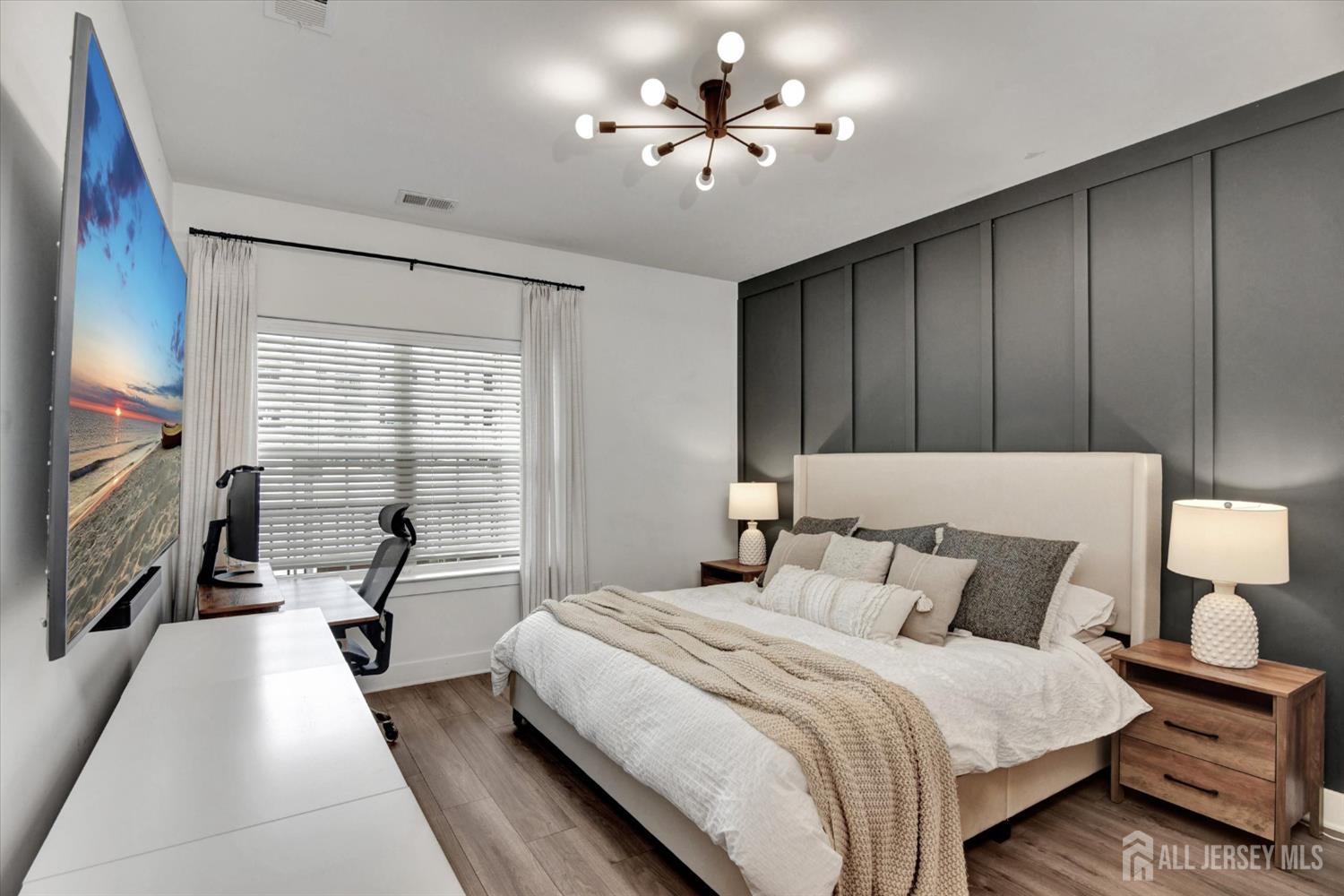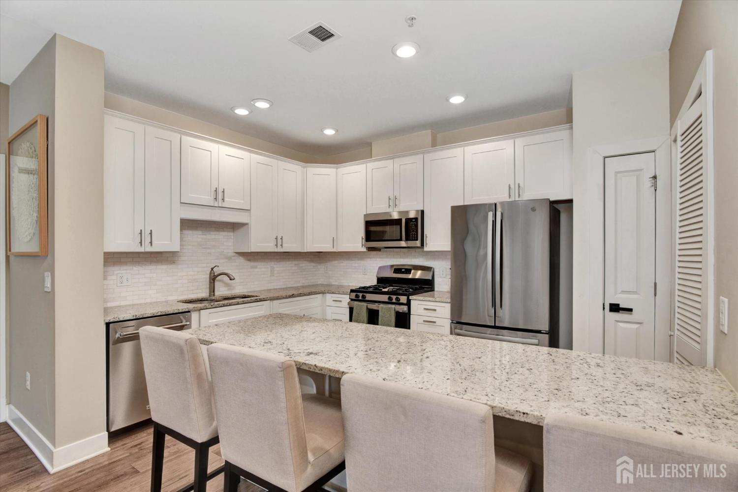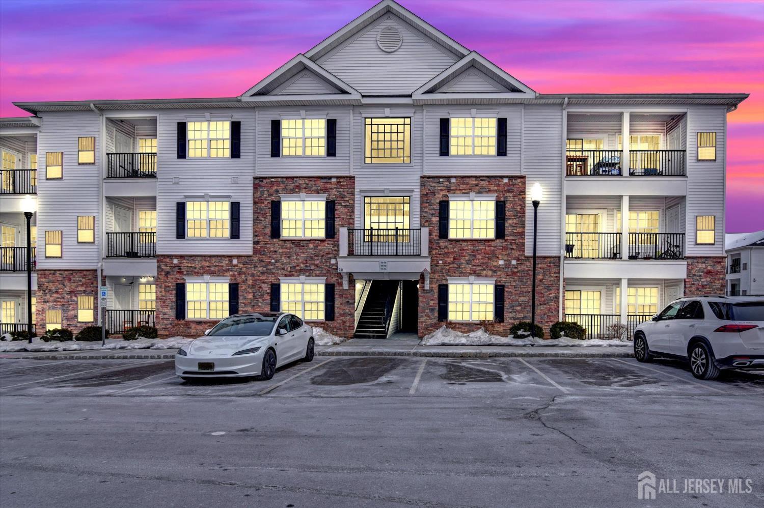 Welcome to this beautifully upgraded, move-in-ready Acadia first-floor model in sought-after Monroe Parke, offering a bright open floor plan, stylish finishes, and easy, low-maintenance living. This bright and spacious home offers 2 large bedrooms and 2 full baths with a well-designed open layout ideal for everyday living and entertaining. The eat-in kitchen is a standout feature, offering a brand-new quiet dishwasher, stainless steel appliances, beautiful backsplash, pantry/utility closet, oversized granite center island, and abundant cabinetry providing excellent storage and functionality. The large, modern living room with recessed lighting opens to a private balcony, creating a bright and inviting space. The living room and primary bedroom both feature custom accent walls that add a modern designer touch and enhance the space. Both bedrooms include custom closets for added storage and organization. The spacious primary bathroom includes a double vanity and a beautifully updated shower with a new glass door, adding a clean, modern finish. Residents of Monroe Parke enjoy resort-style amenities including a clubhouse, fitness center, game room, playground, pool, and beautifully maintained common areas. Ideally located near major shopping, dining, parks, and transportation, this home offers comfort, convenience, and low-maintenance living in one of Monroe Township's most desirable communities. CJMLS 2610740R