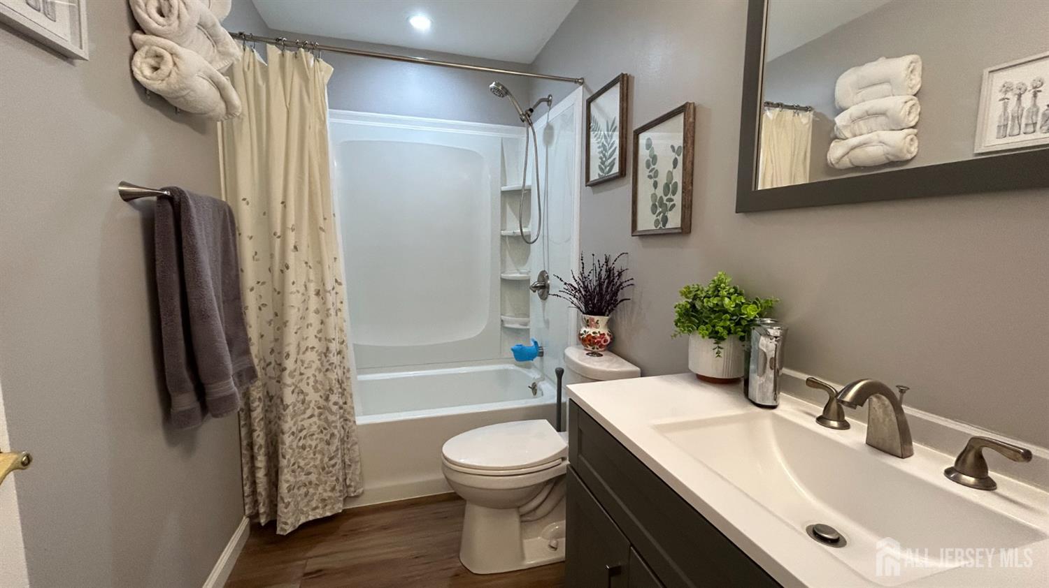 This lovely three-bedroom ranch located in Clearbrook, a vibrant 55+ community, has been fully renovated. It features vinyl wood-look flooring and crown molding throughout the home. Upon entering, one will find a spacious living room. Next to it, is the dining room, which has a sliding-glass door leading to the rear yard. The newer kitchen has been renovated with off-white cabinetry, quartz counters, tiled back splash, and stainless-steel appliances. Down the hall from the living area are three bedrooms, and two newer renovated full bathrooms. The primary bedroom is en suite. Completing this home is an outdoor dining/leisure area and a two-car garage. Clearbrook offers events, sports, activities, trips and more. It has a state-of-the art Clubhouse featuring a creative studio, library, outdoor pool, fitness center, and sports courts including tennis, pickleball, shuffleboard, 9-hole golf course and more. Nearby to NYC bus transportation, shops, and restaurants. Occupancy available April 1st. A winner! CJMLS 2610933R