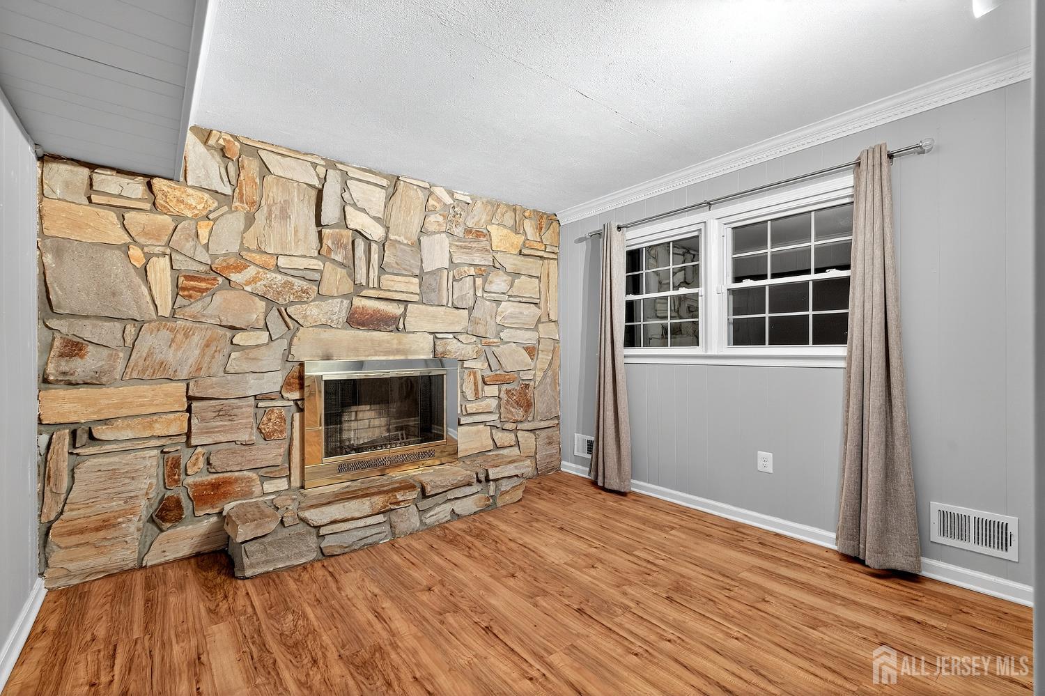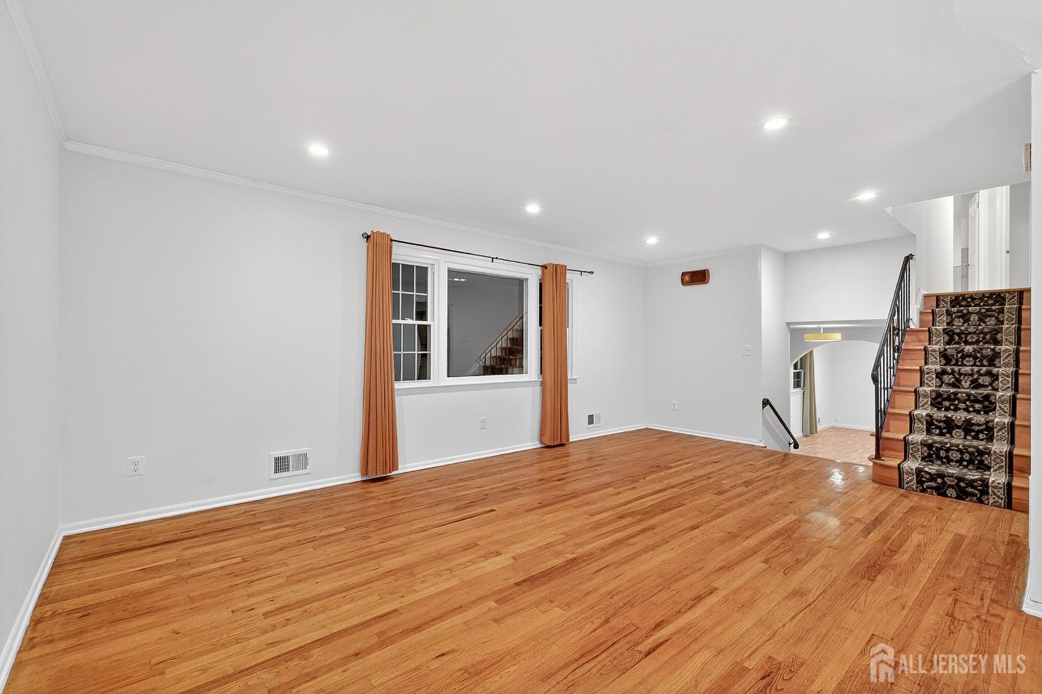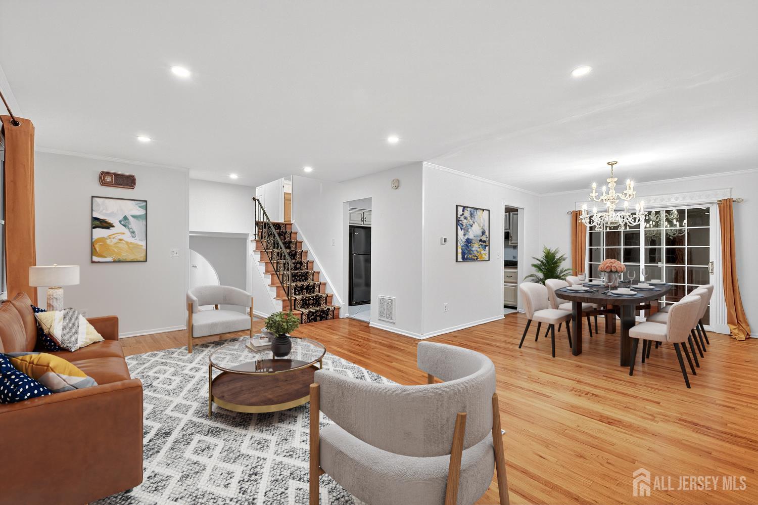 Stunning 4-bedroom, 2.5-bath split-level home in one of the area's most desirable neighborhoods, offering a refined blend of space, style, and modern comfort. The open foyer leads to a spacious family room with recessed lighting, crown molding, and direct access to the finished two-car garage with attic storage. This level also features an updated powder room, a tiled laundry room with backyard access, and a versatile bedroom/office with a wood-burning fireplace and stone surround. The second level showcases an elegant living and dining area with hardwood floors, recessed lighting, and sliders to a huge maintenance-free deck overlooking the expansive yard. The upgraded kitchen offers granite countertops, light oak cabinetry, tile backsplash, pantry storage, and built-in desk area. Upstairs are three generous bedrooms, including a large primary suite with organized closet and updated full bath. The main bath features double sinks, decorative tile, and a tub/shower with glass doors. A finished basement adds valuable living space with tile floors, recessed lighting, and a large utility/storage area. Outdoor living shines with a massive maintenance free deck, lower patio, and wide open backyard. Close to NYC bus/train, shopping, restaurants, all major roadways & more. A rare opportunity to own a beautifully updated home in a premier location. CJMLS 2607422R