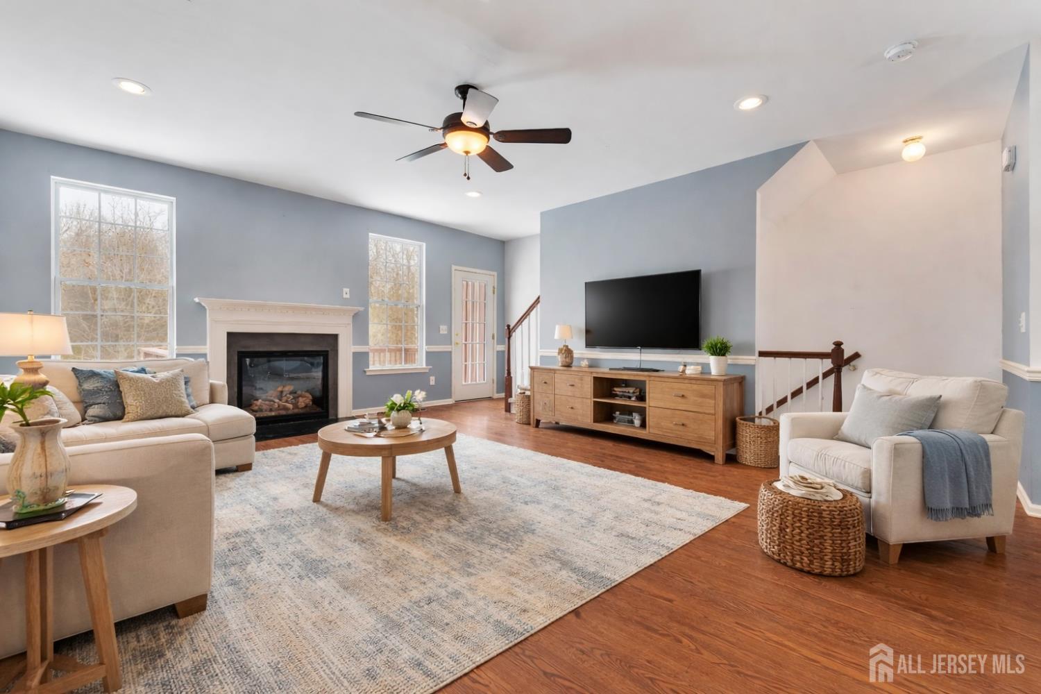 An exceptional opportunity to own one of Madison Crossing's most desirable residences, uniquely positioned to capture rare privacy and tranquil preserved views. This beautifully appointed 2-bedroom, 2 full and 2 half-bath townhome with a 1-car garage blends refined design with effortless, low-maintenance living in a sought-after 55+ community. Gleaming hardwood floors enhance the open-concept main level, where a spacious eat-in kitchen with large pantry flows seamlessly into the dining and living areas, anchored by a warm gas fireplace. Sliding glass doors open to a private deck overlooking protected preserved land a premium setting offering peaceful natural scenery. The upper level reveals a tranquil primary suite offering generous WIC closets and a refined ensuite bath with dual vanities, a sleek glass-enclosed shower, and a privately positioned commode. A well-appointed guest suite and upper-level laundry complete the floor with effortless functionality. The finished lower level, complete with a half bath, offers versatile space ideal for a media lounge, private office, or additional gathering area, extending to a tranquil patio retreat. Thoughtful features include two-zone HVAC, abundant storage, and access to clubhouse amenities, swimming, landscaping, and snow removal, all moments from Route 9 shopping, dining, and transportation. CJMLS 2610658R
