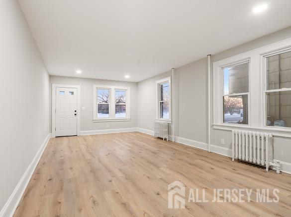 Beautifully renovated 3-bedroom, 1-bath townhouse offering a spacious and modern layout. This home features a large open living and dining area with brand-new flooring, recessed lighting, and abundant natural light throughout. The updated kitchen includes stainless steel appliances, quartz countertops, and ample cabinet space. Three generously sized bedrooms provide comfortable living. Full basement with laundry included. Two dedicated parking spaces add extra convenience. Ideally located near transportation, shopping, and local amenities. Move-in ready and a must-see! CJMLS 2610682R