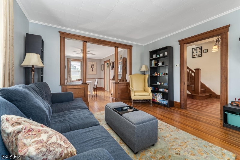 Welcome to this charming 1920's Colonial, rich with character and timeless details. Relax on the large covered rocking chair front porch and step inside to find original woodwork, hardwood floors, and classic doors with period hardware. The home features a slate roof, a full unfinished attic, and a basement offering plenty of storage or expansion potential. The sweet kitchen boasts stainless steel appliances, a quaint pantry, and access to the level backyard with a patio perfect for entertaining or quiet enjoyment. Upstairs, you'll find three bedrooms with hardwood flooring and access to the spacious walk-up attic. Additional convenience includes side entry to the basement as well as access from the kitchen. Private parking is available in the exclusive driveway to the left of the home. Ideally located on a cul-de-sac, this home is close to trains, shopping, downtown, and major routes making commuting and daily living a breeze. Professional photos and Virtual tour coming soon -- Seller would like a Mid December closing GSMLS 3990156