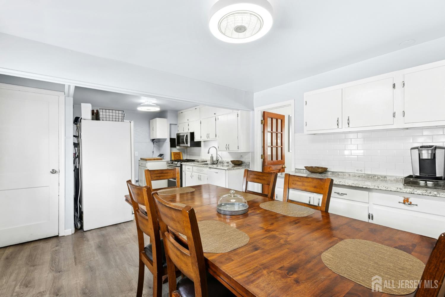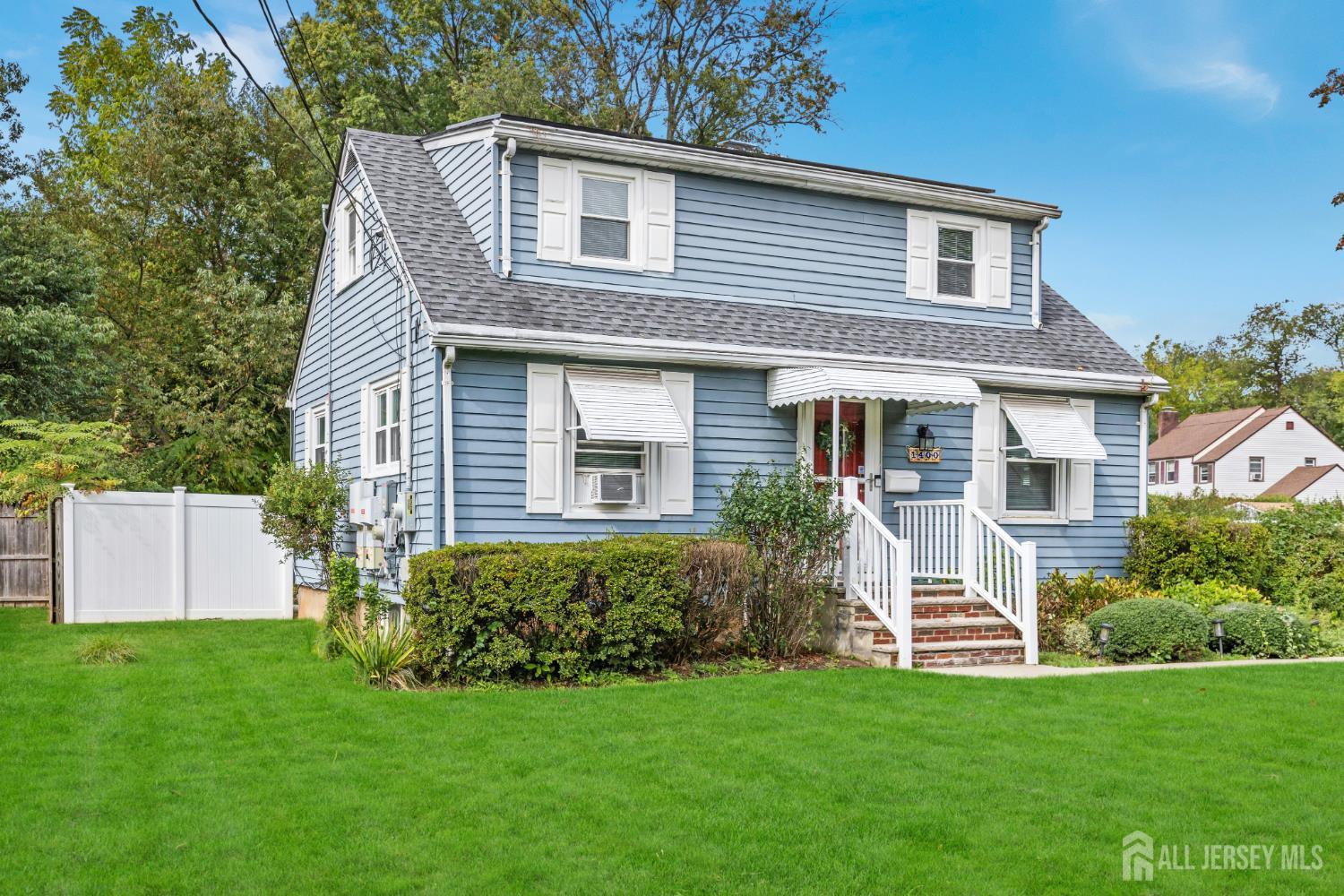Welcome to this spacious 4-bedroom, 1.5-bath expanded Cape, set on an oversized, fully fenced lot. The first floor features a large living room, an updated kitchen that opens to the dining room, and a bright family room with walls of windows. Two first-floor bedrooms share a beautifully renovated full bath. Upstairs, you'll find two generously sized bedrooms and a convenient powder room. The clean, dry basement with high ceilings offers a partially finished rec room and plenty of storage. Step outside to a huge backyard, perfect for entertaining, complete with a patio. Additional highlights include a 2-car detached garage, hardwood floors, and fresh paint throughout. Fantastic location - just blocks from schools, park and the Rec Center/pool!! CJMLS 2605275R